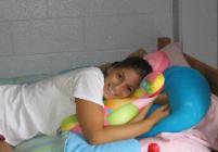 Settling into her dorm room |